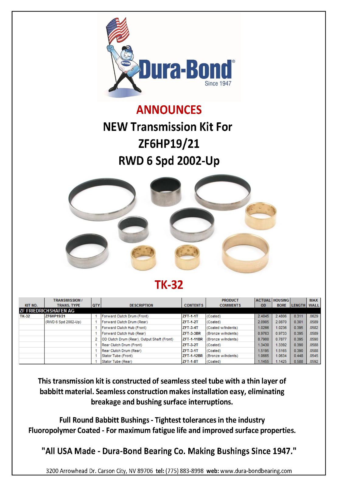 - (1) “B” Clutch Drum bushings, rearbushing