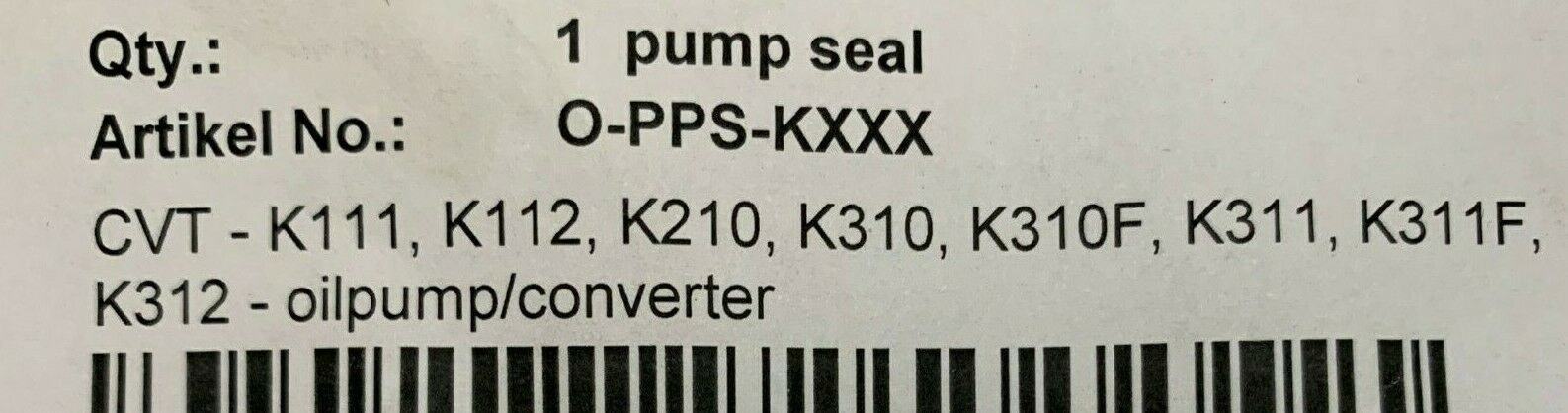 K111 / K112 / K210 / K310 / K310F / K311 / K311F / K312 TORQUE CONVERTER OIL PUMP SEAL